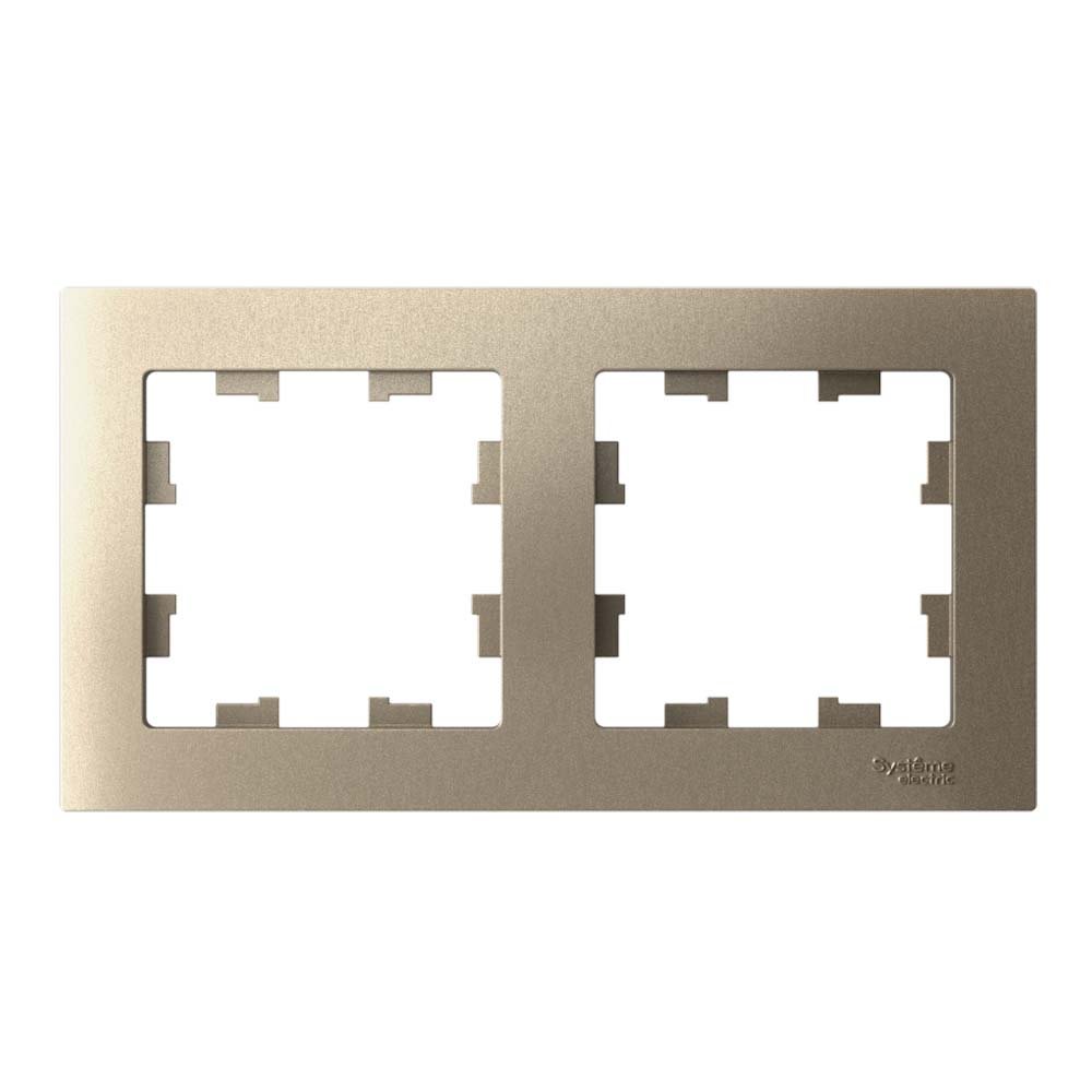 Рамка Systeme Electric серии AtlasDesign в цвете шампань двухместная. Устанавливается в вертикальном и горизонтальном положениях.