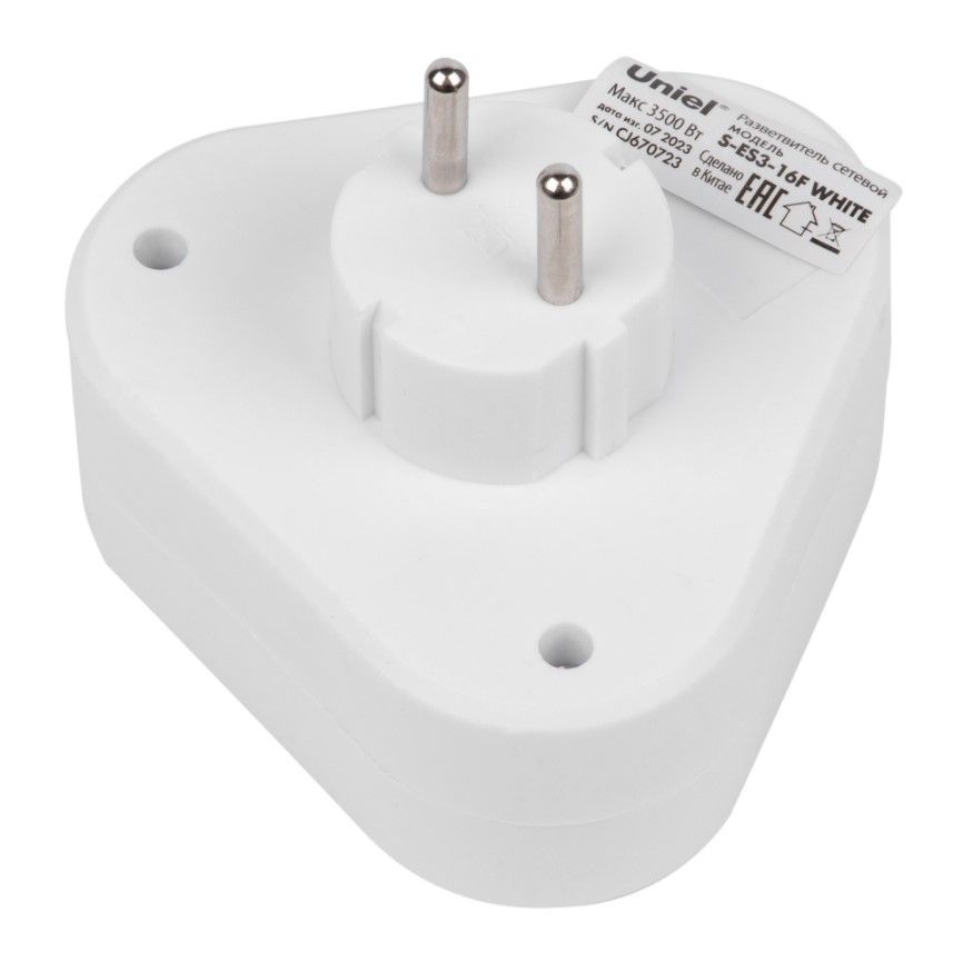 Разветвитель сетевой. б/з. 3 гнезда 16А 3500Вт белый S-ES3-16F WHITE Uniel предназначен для подключения нескольких электроприборов в одно гнездо розетки.
