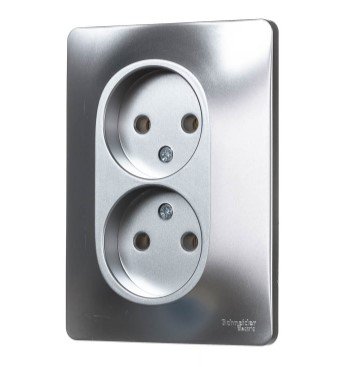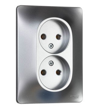 Розетка 2-я без заземления в сборе (алюминий) GLOSSA SE