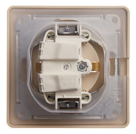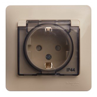 Розетка с заземлением с защитными шторками с крышкой IP44 в сборе (бежевый) GLOSSA SE