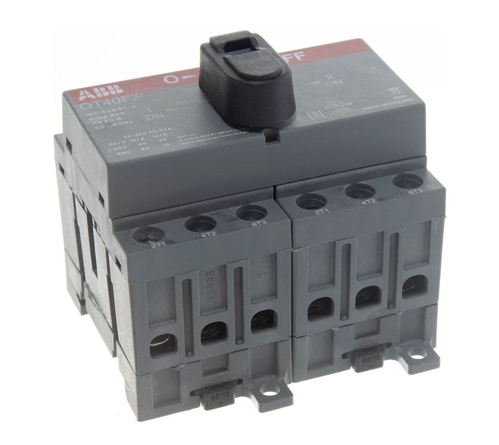 Рубильники (выключатели нагрузки) серии OT компании ABB рассчитаны на универсальное применение в качестве выключателей в различных электрических цепях, включая цепи питания электродвигателей, как главные выключатели, выключатели безопасности местного назначения, специальные, либо секционные выключатели. Присоединительные клеммы, расположены в одной плоскости, находятся непосредственно в зоне проводки, хорошо доступны при монтаже и имеют достаточные размеры. Особенности: - Реверсивные выключатели АББ очень хорошо подходят для тяжелых условий эксплуатации. Они обладают сравнительным индексом трекингостойкости свыше 600 В (согласно ГОСТ 27473-83), их пригодными для использования даже в тропических условиях. - Даже на большие токи не требуется параллельное объединение полюсов (одна фаза на один полюс). Это позволяет снизить потери и повысить энергоэффективность. Так же не требуется приобретать дополнительные аксессуары для объединения и подключения. - Модульная конструкция аппаратов позволяет выбрать необходимое число полюсов и расположение механизма переключения, а использование выносных рукояток – позволяет создать уникальное решение для каждого, даже самого требовательного клиента.