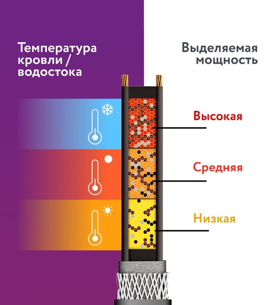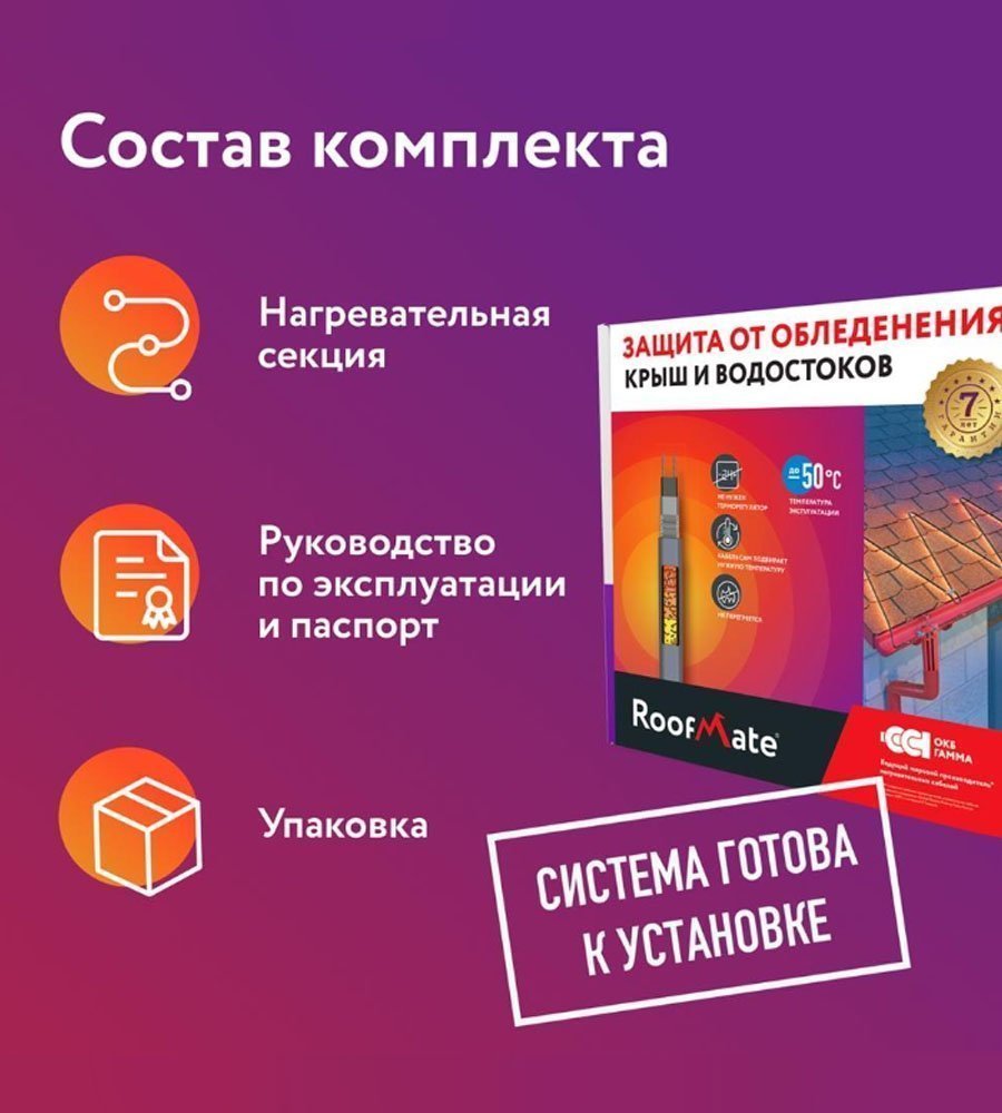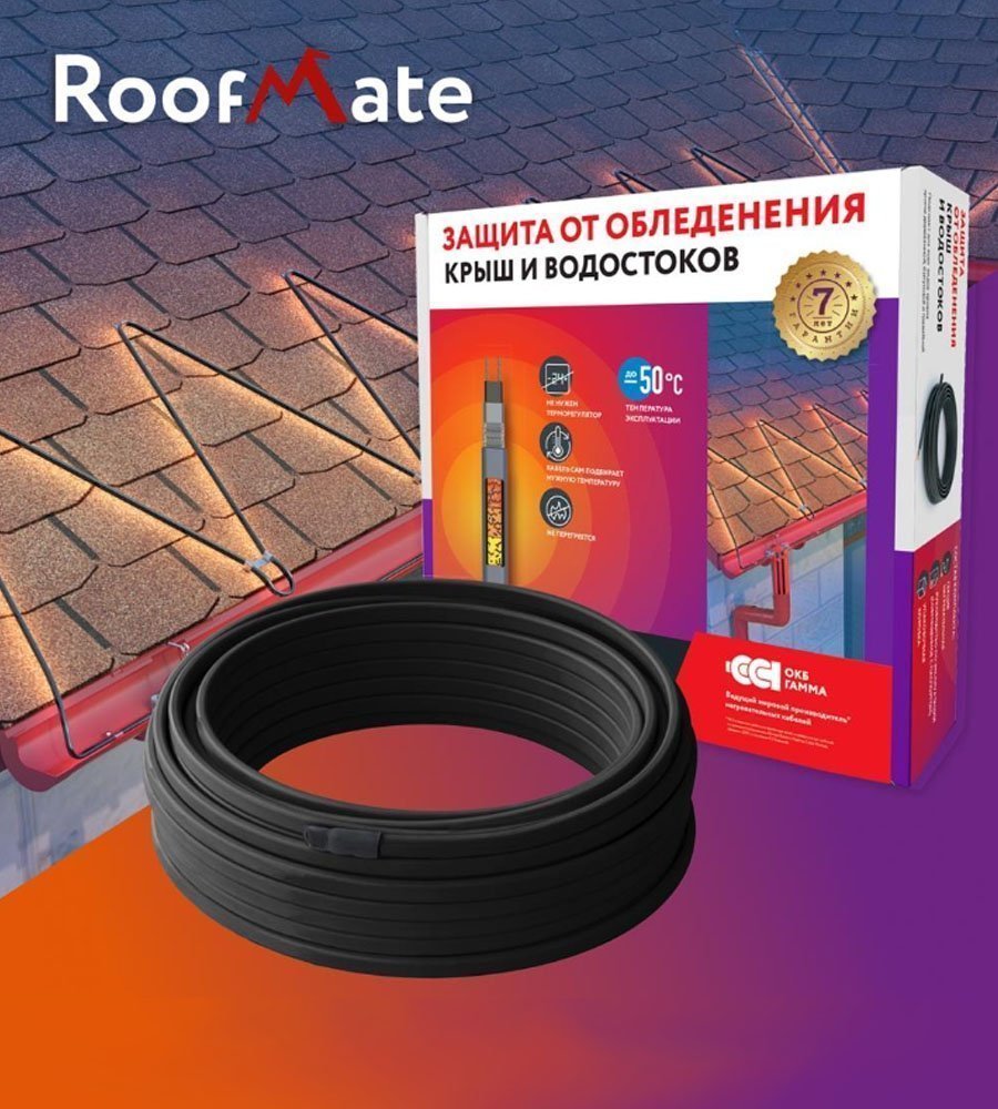 Секция нагревательная кабельная RoofMate 30Вт/м 2м саморегулируемая предназначена для предотвращения образования ледяных отложений на крышах зданий и водостоках.