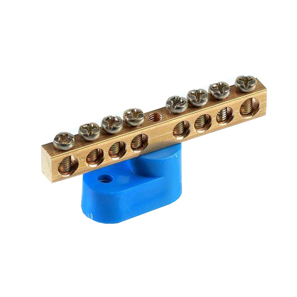 Шина N "ноль" 8 отверстий 1 изолятор "стойка" 6х9мм латунь (синий)