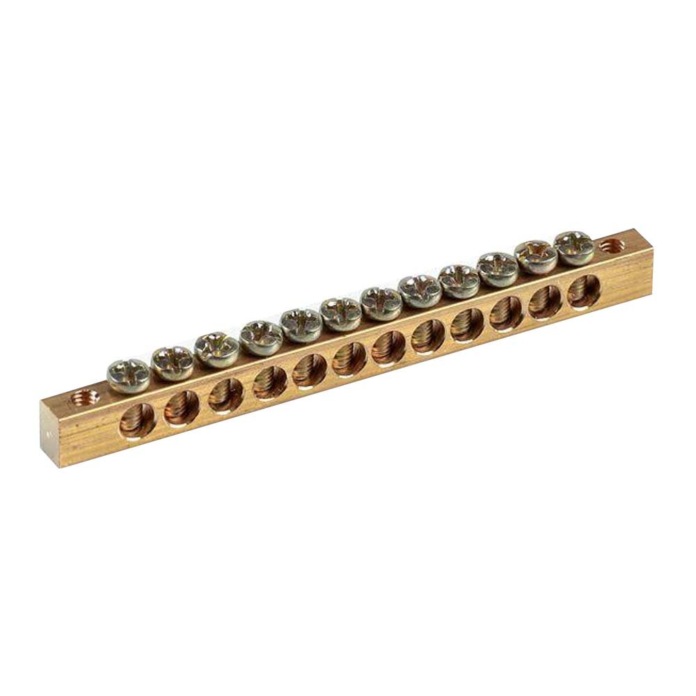 Шина РЕ "земля" 12 отверстий 6х9мм 12/2 (12групп/крепеж по краям) латунь