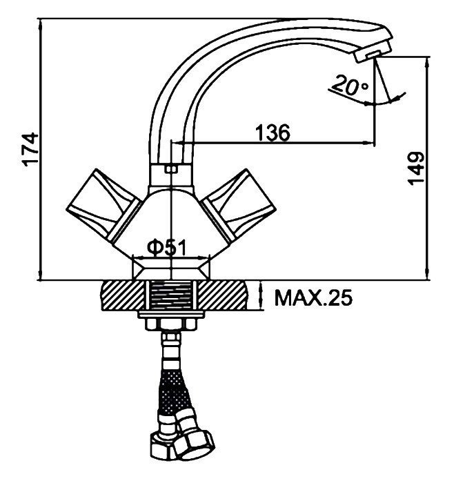 Двухрычажный смеситель округлой формы из высококачественной латуни с хромированным покрытием подойдет для интерьера в стиле ретро. Излив поворотный, длина 171 мм. Конструкция основана на использовании керамических кран-букс. Аэратор максимально увеличивает насыщенность воды кислородом. Аэрация струи происходит за счет увеличения площади потока. Монтаж осуществляется на одно отверстие, на гайке.
