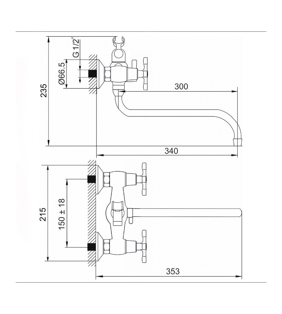 Переключение режимов излив/лейка с помощью механизма с керамическими пластинами, в комплекте душевая лейка с креплением и гибкий шланг длиной 1,5 метра. Регулировка подачи и температуры воды происходит с помощью двух маховиков с керамическими кран-буксам.
