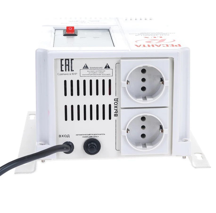 • Работает с напряжением 220В с точностью до +/-8%. Устройство оснащено фильтрами сетевых помех, предотвращающими искажение частотной синусоиды, микропроцессорным управлением и цифровым индикатором напряжения.