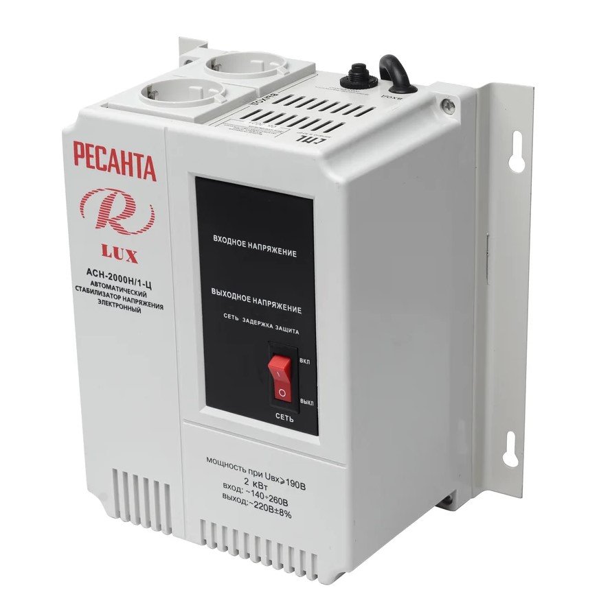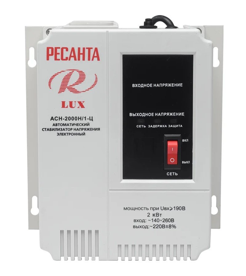 Стабилизатор напряжения серии LUX РЕСАНТА АСН-2000Н/1-Ц релейного типа предназначен для выравнивания входного напряжения и защиты приборов от перепадов напряжения с суммарной мощностью до 2 кВт.