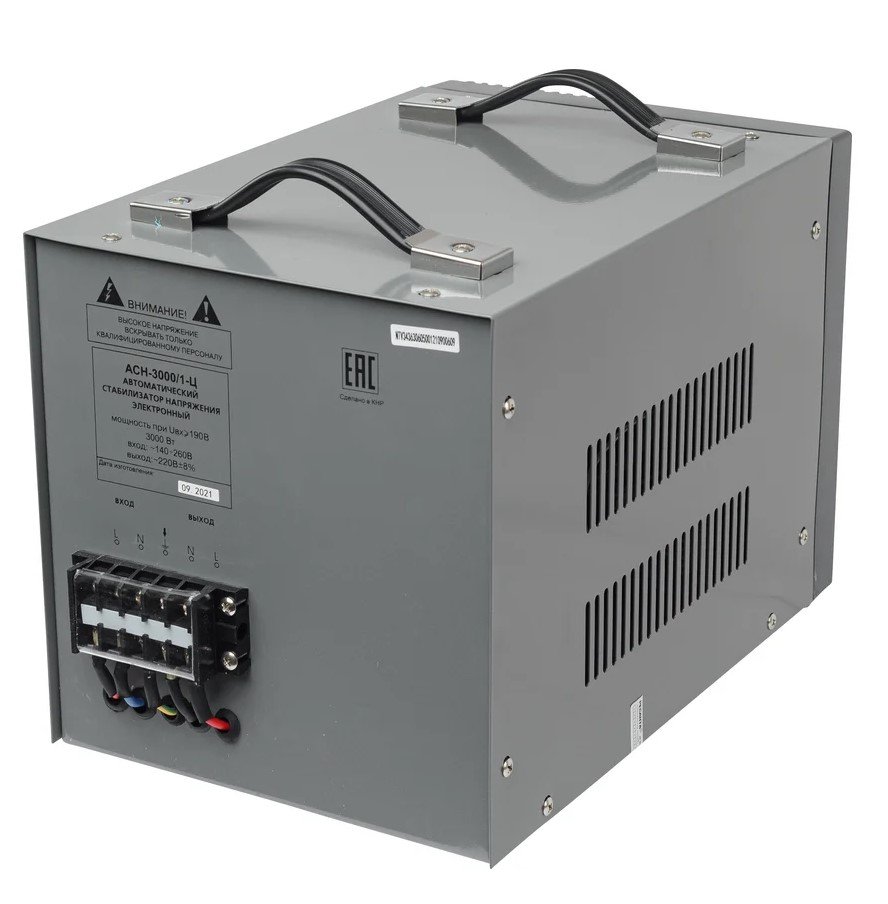 Стабилизатор релейного типа за счет своего принципа работы позволяет моментально реагировать даже на самые значительные и частые изменения напряжения в сети и предотвратить выход оборудования из строя. Номинальная мощность при входящем напряжении 190В составляет 3000Вт. Количество фаз = 1.