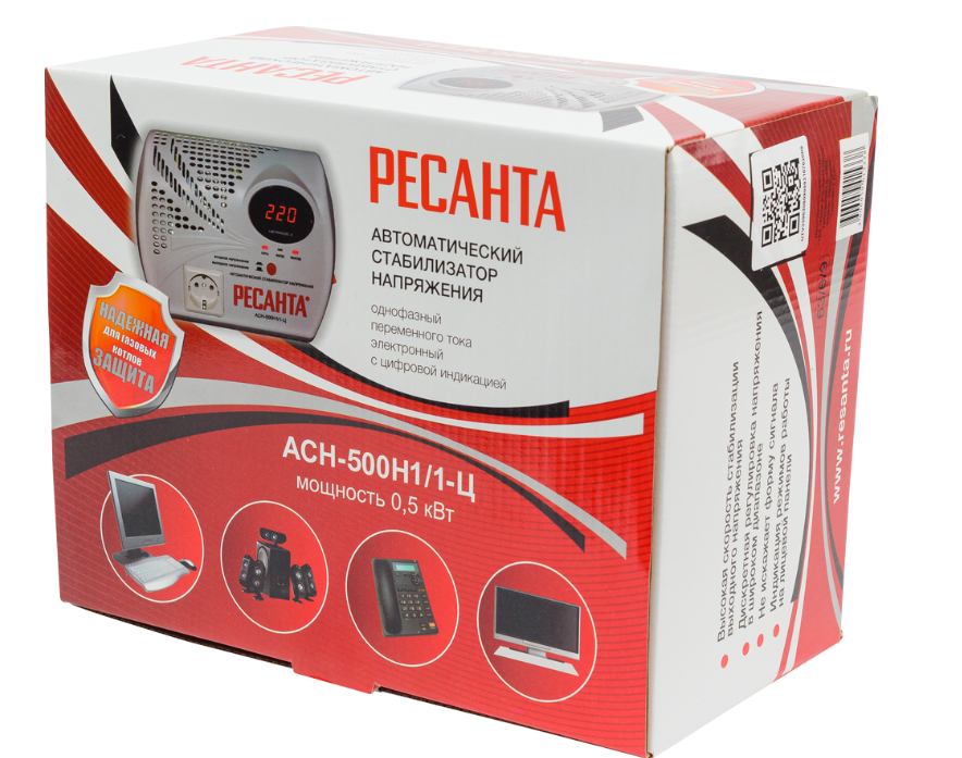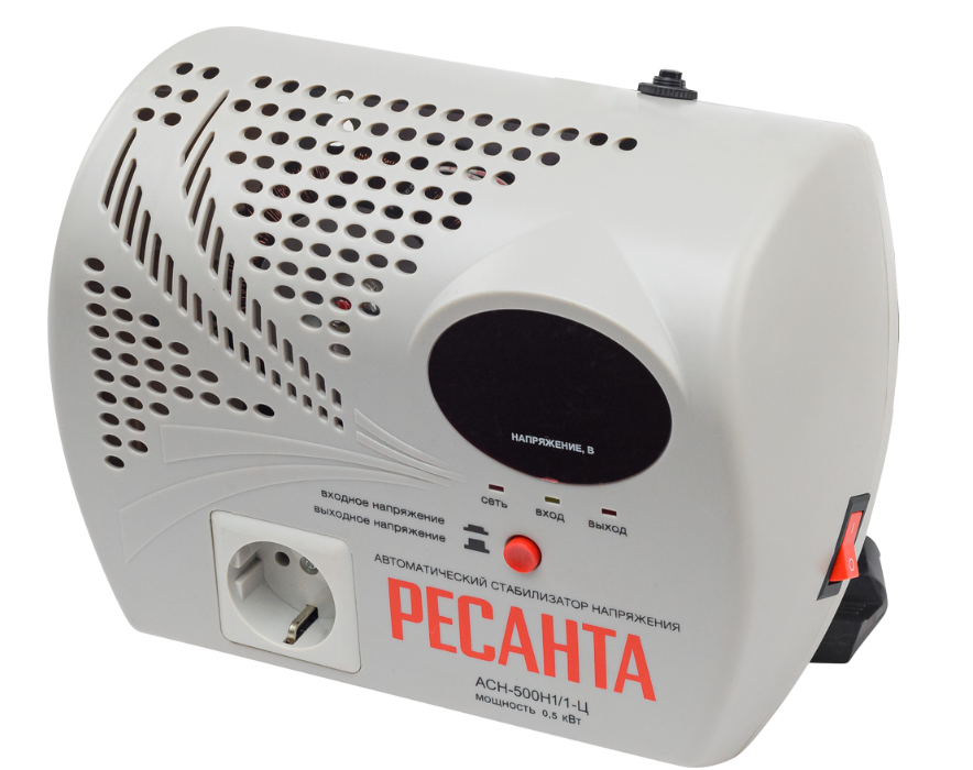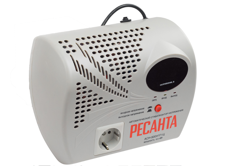 Стабилизатор Ресанта оснащен цифровым дисплеем, показывающим основные параметры работы. Для более эффективного охлаждения в конструкции прибора предусмотрен вентилятор. С помощью функции «Байпас» можно выключить устройство и подключить нагрузку в обход стабилизатора к питающей сети одним нажатием кнопки.