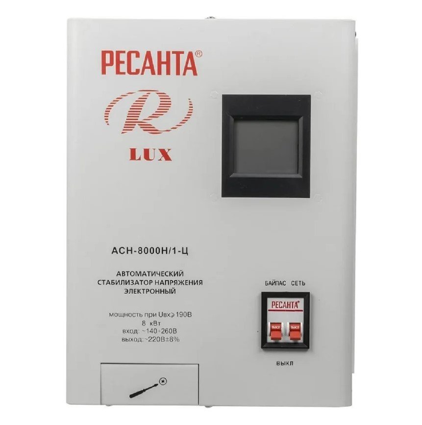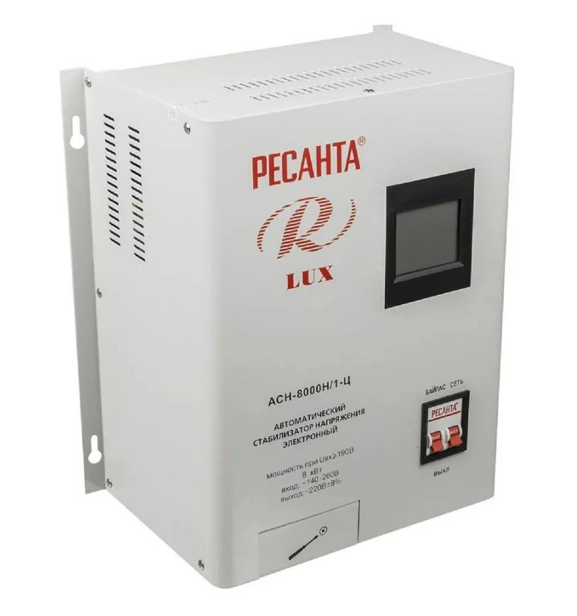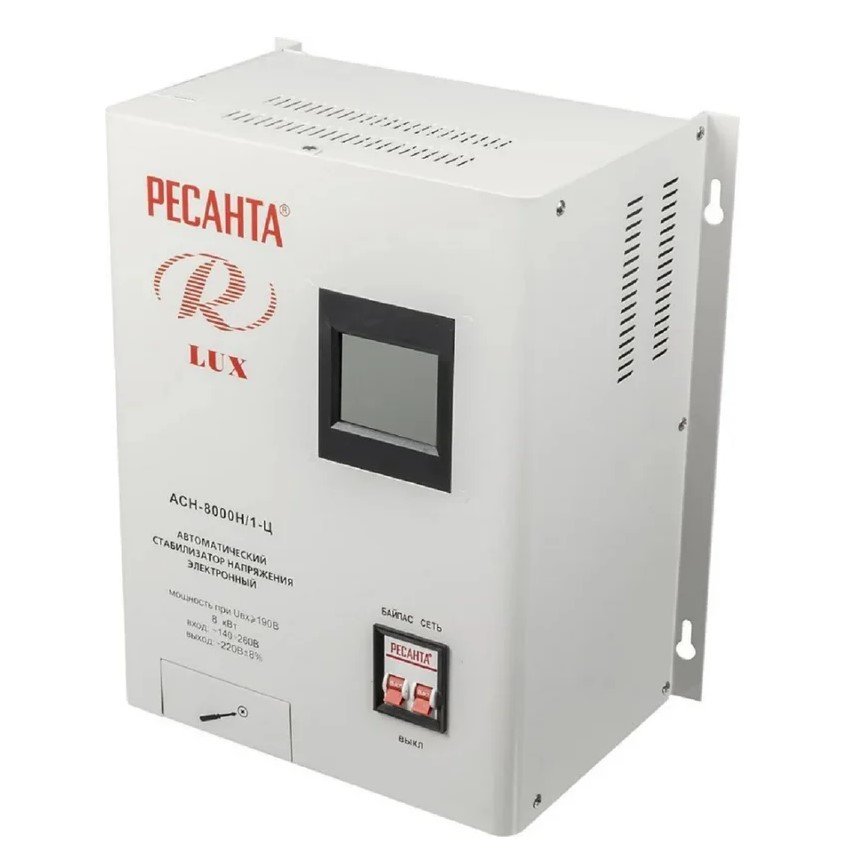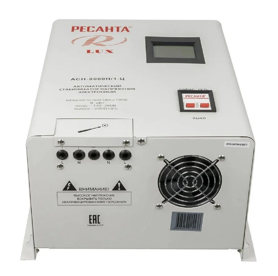 За счет своего принципа работы такой стабилизатор позволяет моментально реагировать даже на самые значительные и частые изменения напряжения в сети и предотвратить выход оборудования из строя. Номинальная мощность при входящем напряжении 190В составляет 8000Вт. Количество фаз = 1.