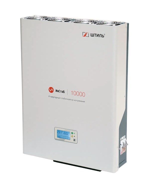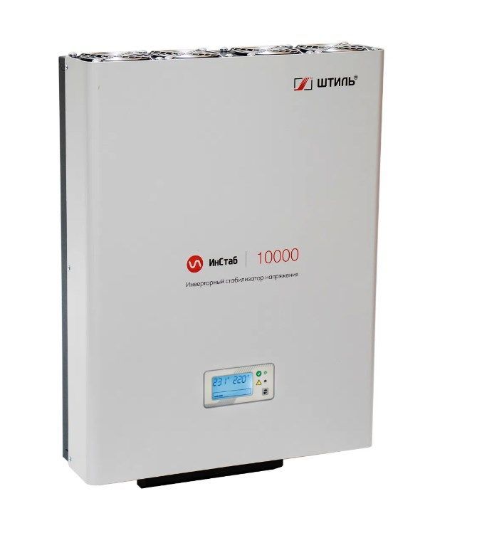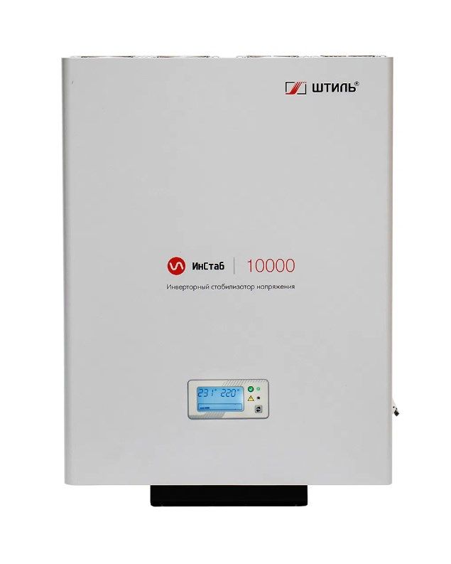Инверторный стабилизатор Штиль с двойным преобразованием - это инновационное техническое решение позволяющее получить характеристики стабилизации напряжения недоступные для существующих на рынке других типов стабилизаторов напряжения. Безтрансформаторная технология, безступенчатое регулирование, идеальное синусоидальное напряжение на выходе, встроенная многоступенчатая система защиты. IS10000 имеет комбинированную конвенционную/вентиляторную систему охлаждения. На верхней панели устройства установлено 4 малошумных вентилятора, которые включаются при достижении критической отметки внутренней температуры стабилизатора. Инверторный однофазный стабилизатор 10000 ВА Штиль ИнСтаб IS10000 (220 В) служит для защиты цифровой и оргтехники, а также бытовых электроприборов от перепадов напряжения сети. Специальное покрытие корпуса устойчиво к влиянию коррозии и образованию сколов в течение всего срока службы. Яркий ЖК дисплей позволяет визуально контролировать основные рабочие параметры. В изделии предусмотрена электронная аварийная защита от короткого замыкания, импульсных помех, перегрузки, перегрева и аварии сети. Поддерживается работа в режиме байпас, который позволяет в случае перегрузки или поломки инвертора питать нагрузку напрямую от сети.