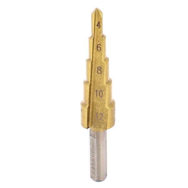 Сверло изготовлено из быстрорежущей стали марки М2. На каждой ступени есть маркировка фактического диаметра. Ступеней сверла - 5 шт. Шаг диаметров - 2 мм. Диаметр 4, 6, 8, 10, 12 мм