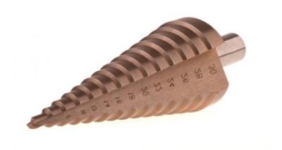 Сверло изготовлено методом шлифования профиля, соответствует классу точности сверления ''А1''. Угол заточки при вершине 135° для ускорения процесса сверления и оптимального распределения нагрузки на режущие грани. Крестообразная подточка ускоряет процесс сверления. Износоустойчивое кобальтовое покрытие, нанесенное на рабочую часть сверла, значительно повышает его производительность, а геометрия изделия гарантирует точность, долговечность и высокий ресурс. Диаметры: 4-6-8-10-12-14-16-18-20-22-24-26-28-30 мм (14 ступеней). Длина 100 мм. Трехгранный хвостовик 10 мм.