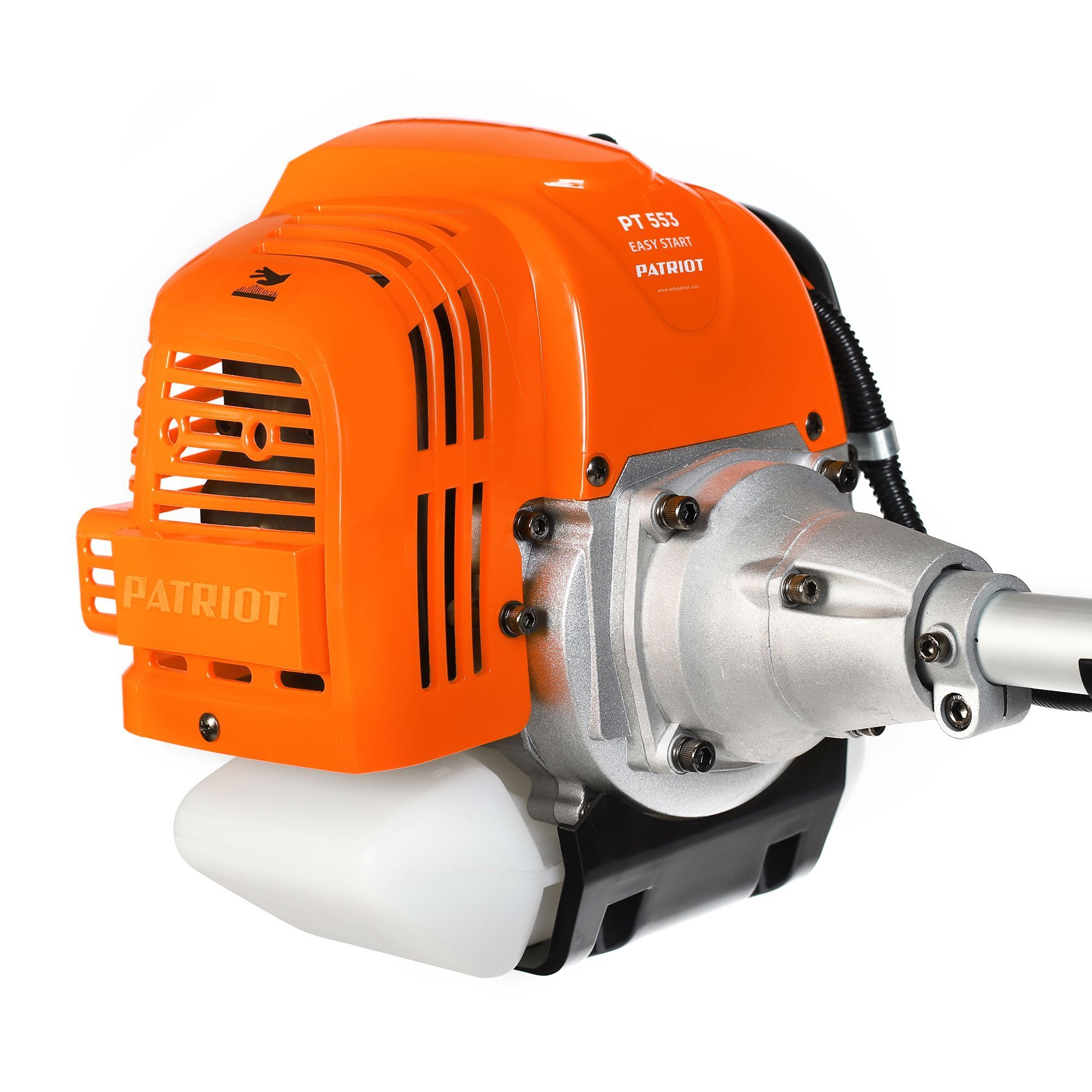 Триммер бензиновый PT 553 1+1 PATRIOT  с регулируемой велосипедной рукояткой предназначен для скашивания густой травы на неровных, больших площадях. Обладает современным дизайном, усиленным корпусом двигателя, жестким трансмиссионным валом. При замене лески на режущий нож применяется для скашивания сухостоя, жестких сорняков и небольших кустарников.