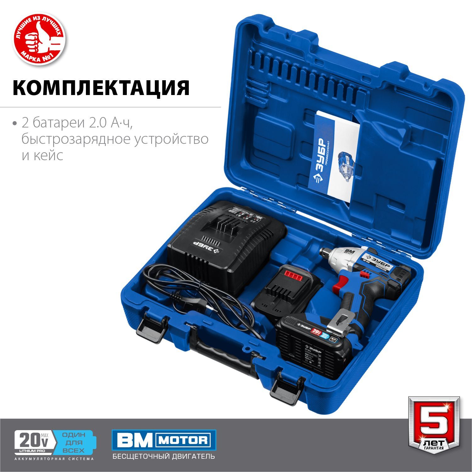 Ударный бесщеточный гайковерт 2 АКБ в кейсе Профессионал ЗУБР