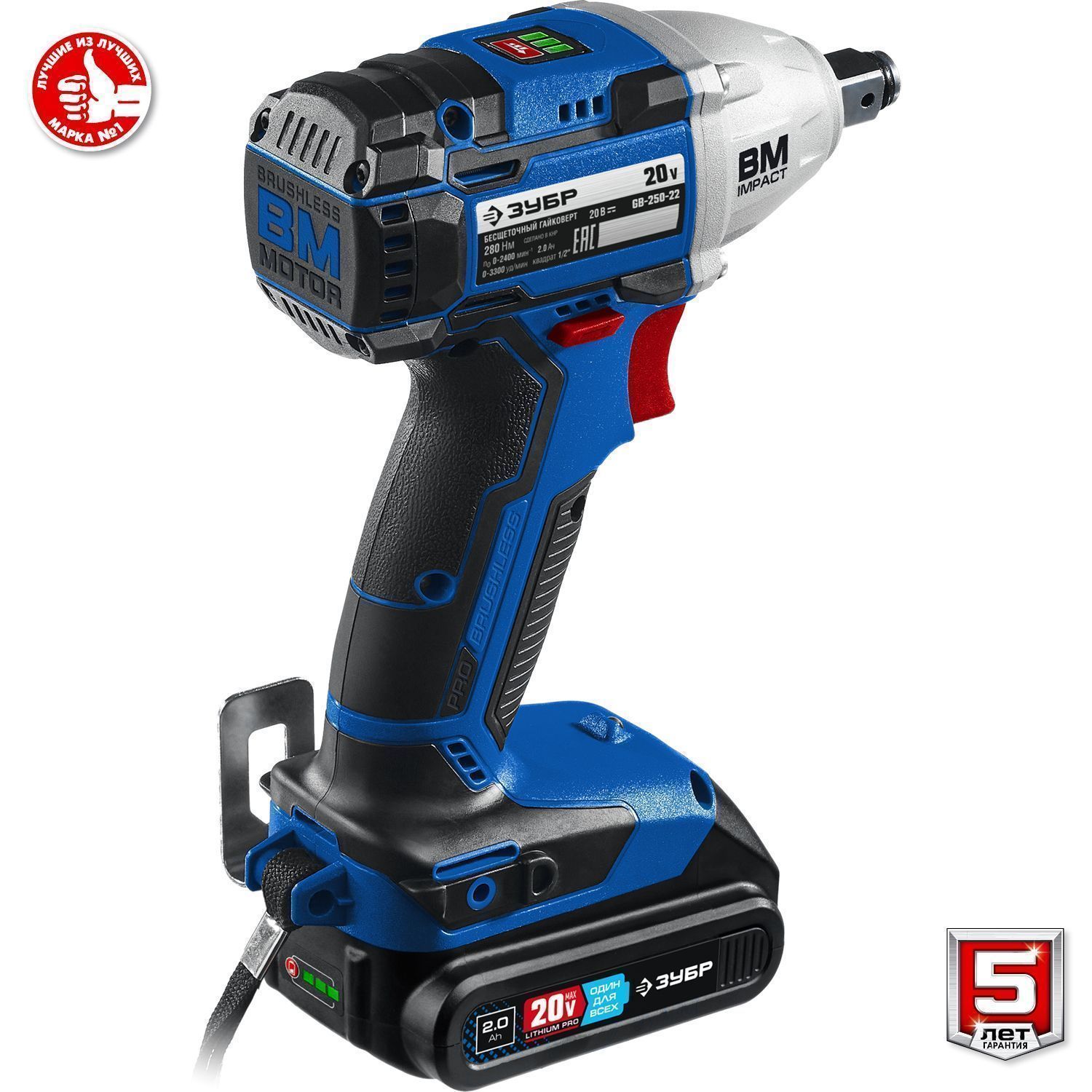 Ударный бесщеточный гайковерт 2 АКБ в кейсе Профессионал ЗУБР для закручивания/откручивания крепежных элементов при сборке/разборке металлических конструкций, снятии/установке колес автомобиля и т.д.