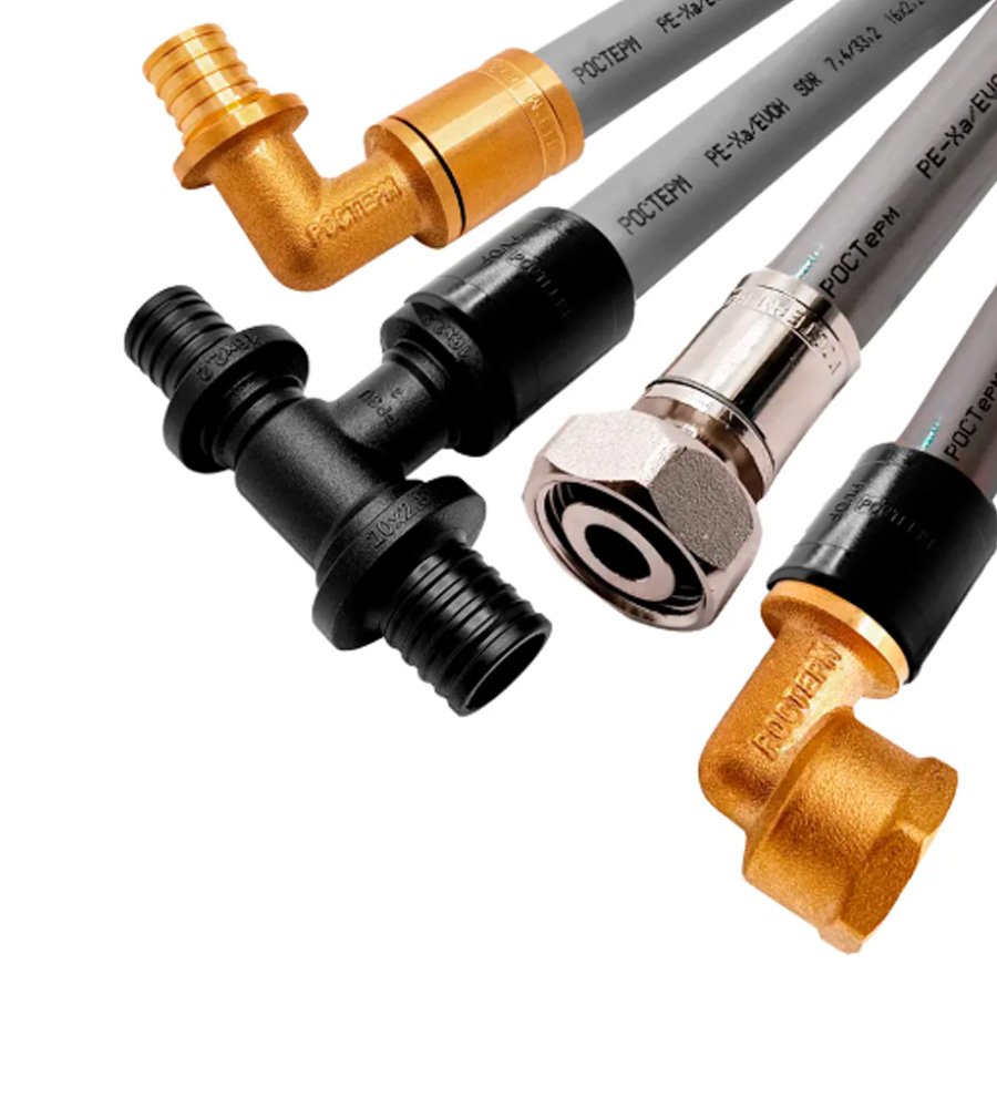 • Фитинги неразъёмные, подходят для скрытого монтажа, в том числе для заливки в стяжку.