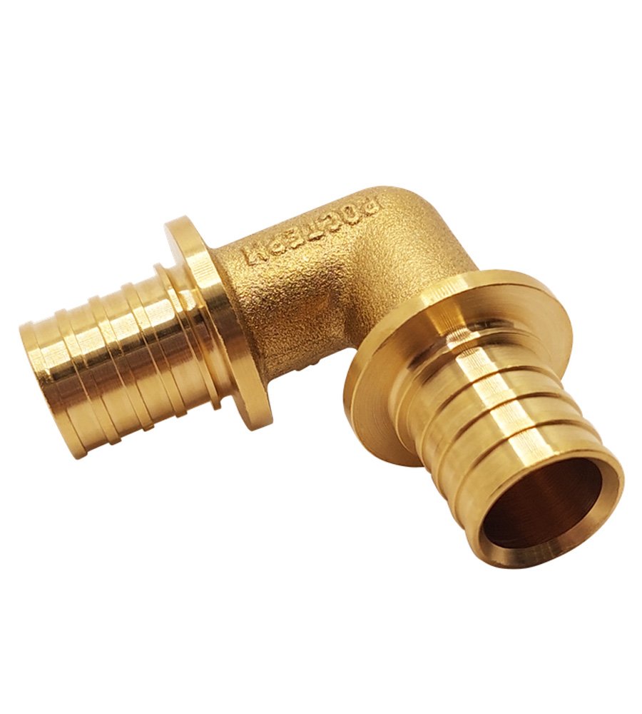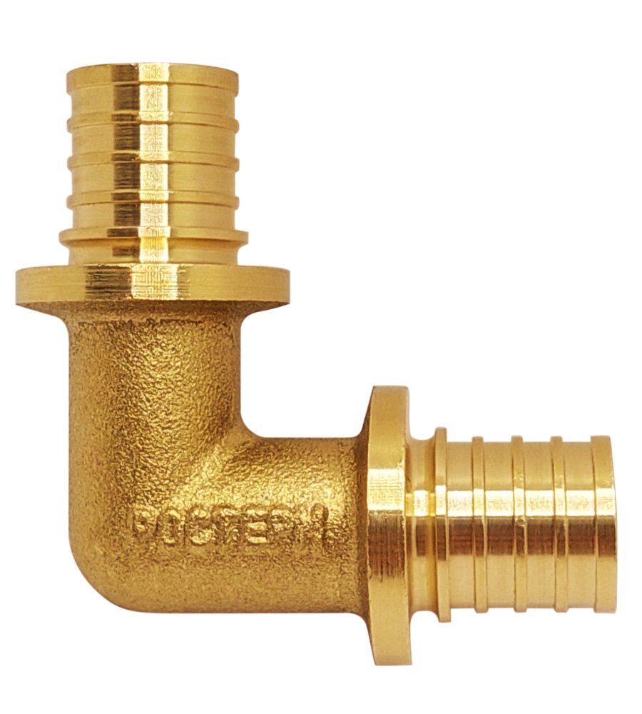 Угольник 16  РОСТерм из высококачественной латуни CW617N, используется для надежного и герметичного соединения труб из сшитого полиэтилена диаметром 16 мм под углом 90° в системах водоснабжения или отопления. Вместе с напрессовочной гильзой она обеспечивает надежное и герметичное соединение, предотвращая возможные утечки и продлевая срок службы всей системы.