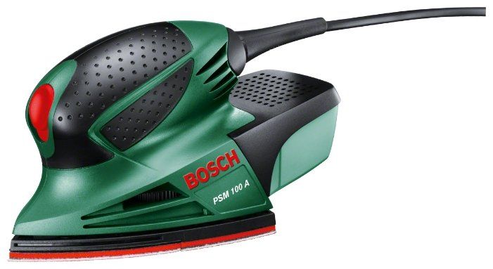 Вибрационная шлифмашина PSM 100 A BOSCH - универсальное устройство, которое поможет достичь оптимального результата во время обработки даже труднодоступных углов. Небольшой вес и скромные габариты модели способствуют широкому спектру ее использования. Данный инструмент также подойдет для реставрации мебели. Преимущества модели: встроенный мощный пылевсасывающий элемент для максимально чистой обработки; эргономичная и удобная форма, за счет которой инструмент отлично лежит в руке; повышенная износостойкость, которую обеспечивает поворачиваемый дельтавидный конец подошвы; надежная фиксация шлифлиста при помощи микролипучки.