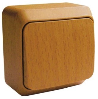 Выключатель подходит для большинства типов ламп, включая люминесцентные. Изделия цвета Бук обладают уникальным рисунком, напоминающим древесный сруб. Он прост в установке и удобен в применении.
