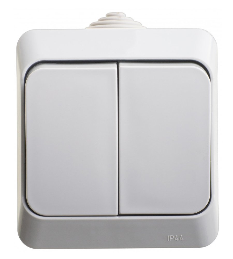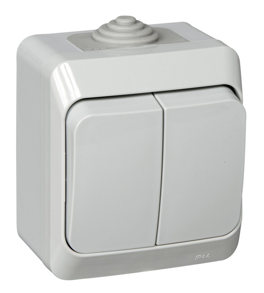 Выключатель Systeme Electric (ранее Schneider Electric) ЭТЮД (серый, открытой установки) двухклавишный предназначен для применения в сетях до 250В, на ток до 10А. Выключатель подходит для большинства типов ламп, включая люминесцентные. Две клавиши позволяют управлять двумя источниками света с одной точки. Он удобен в применении и отлично подходит для ванной комнаты (IP44). Сделано в России.