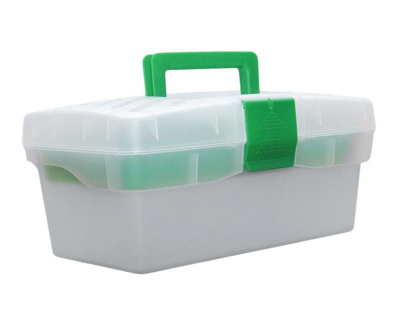 Ящик универсальный 610416 PROFBOX предназначен для  хранения инструментов  и хозяйственных мелочей. Удобная ручка для переноски. Замок, обеспечивает надежное хранение вещей. Для большего удобства в ящик вставлен пластиковый лоток с ручкой. На крышке имеются два дополнительных отсека для хранения мелочей с прозрачными крышками. Размер 12.