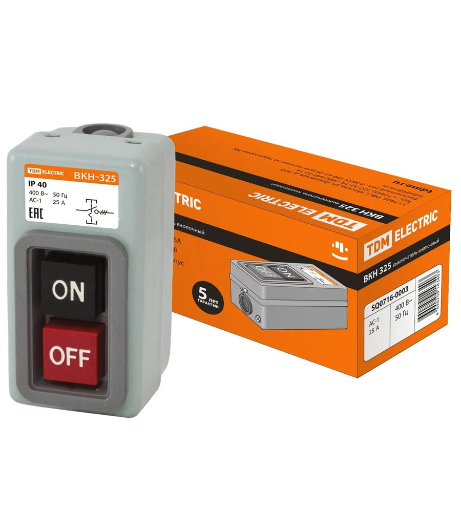 Простейшим прибором для управления электродвигателем является механический включатель, например ВКН-325. Его преимуществом является простота, низкая стоимость и надёжность, при условии нечастых включений и небольшой мощности двигателя – до 1 кВт. Из-за повышенного обгорания контактов при пусках и отключениях, такие выключатели не пригодны для управления тяжелонагруженными двигателями.