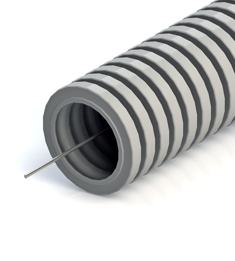 ПНД (полиэтилен низкого давления) обладает большей прочностью и химической стойкостью. Его можно прокладывать на улице и под землёй, а также, благодаря прочности, заливать в бетонной стяжке и прятать в штробы. Но есть и важный недостаток – полиэтилен легко горит и распространяет огонь, поэтому для открытой прокладки в помещениях он не годится. Так же, как и ПВХ, трубы из ПНД выпускаются в виде гофры или гладкой трубы.