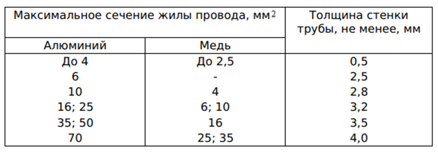 Согласно СП256.1325800.2016, п.15.15: «Локализационная способность – это способность стальной трубы выдерживать короткое замыкание в электропроводке, проложенной в ней, без прогорания её стенок». Мощность электродуги зависит от тока короткого замыкания, который, в свою очередь, определяется сечением жил кабеля – отсюда и разные требования к толщине стенок трубы (см. таблицу 15.1 ниже):